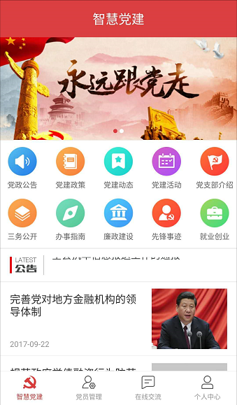 一是深入推进党的思想理论建设。金年会jinnian在智慧党建平台建设过程中充分利用“三会一课”、主题党日、组织生活会等活动形式,建立和完善线上党的思想理论学习的长效机制。深入推进“两学一做”学习教育移动化、常态化、制度化。