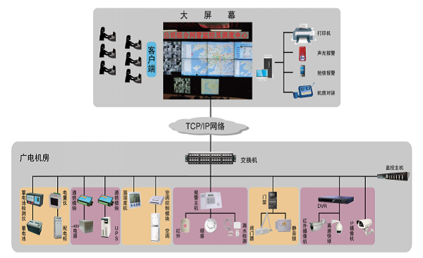 金年会jinnian研发的广电机房监控系统一般都为三级监控,视频监控、门禁监控、动力环境、设备监控在统一的平台下融为一体, 完整的C/S和 B/S 结构,采用现场采集单元+分监控中心+监控中心模式。用户可以按照自身实际需求选择系统构架及功能模块,设备配备灵活方便。