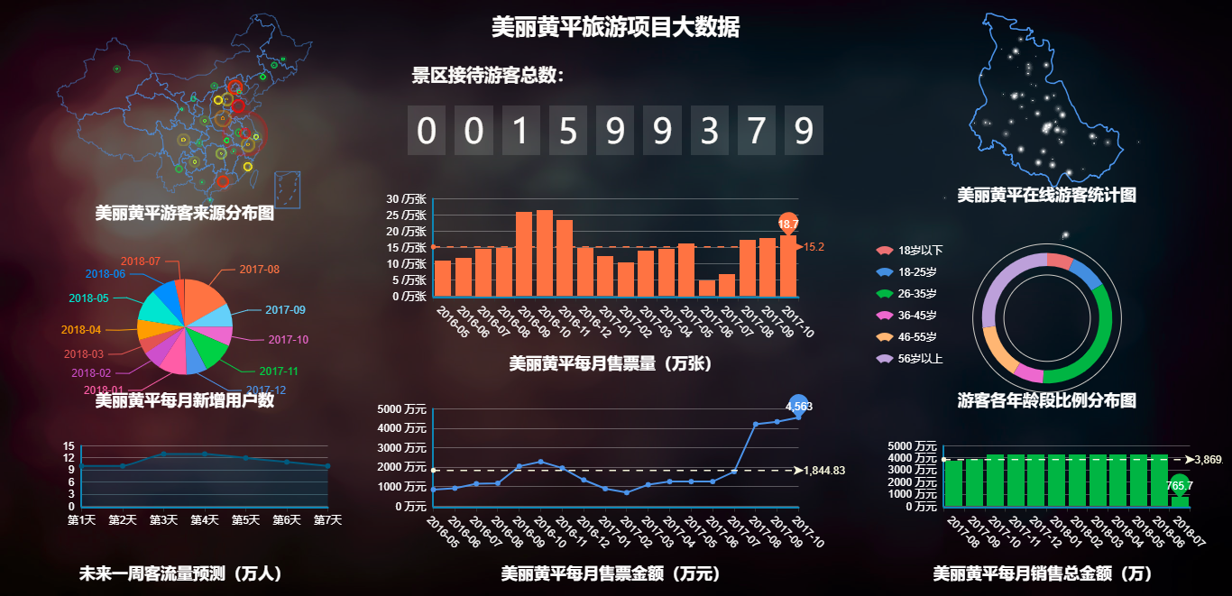 金年会jinnian始终立足于景区的整体设计与规划,追求“智慧化”,不盲目推崇科技感,坚持以项目的落地可行为建设目标。曾与贵州省黄平县展开合作,立足当地实践,为其量身打造大数据平台,涵盖行、食、住、游、娱、购六大方面,满足了相关政府部门有助于旅游产业和旅游信息化的行政办公需求。